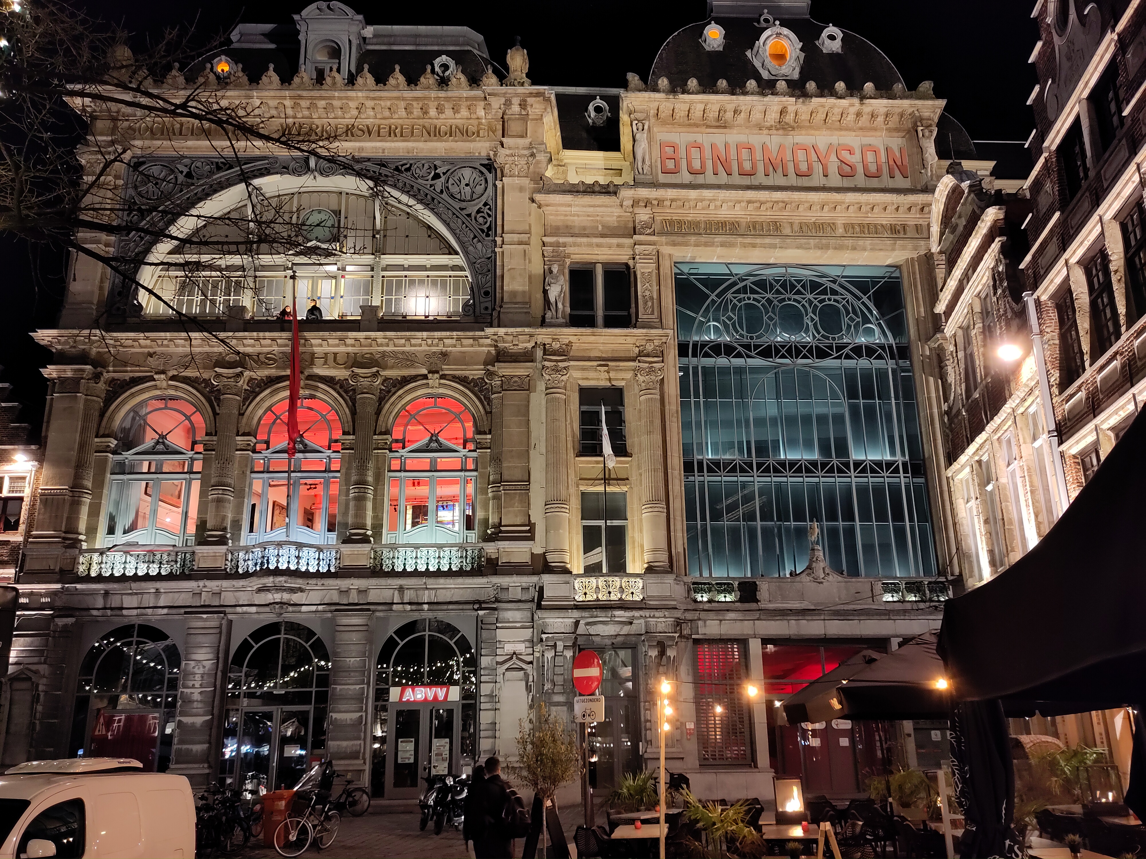 De pontificale historische aanwezigheid van de vakbonden viel me ook op. Midden in het centrum is begin 20ste eeuw een gigantisch gebouw voor de vakbond gebouwd. Daarnaast is een belangrijk cultureel centrum opgericht als coöperatief door arbeiders. Zo aanwezig als in Gent zie ik de vakbond eigenlijk niet in Nederland.