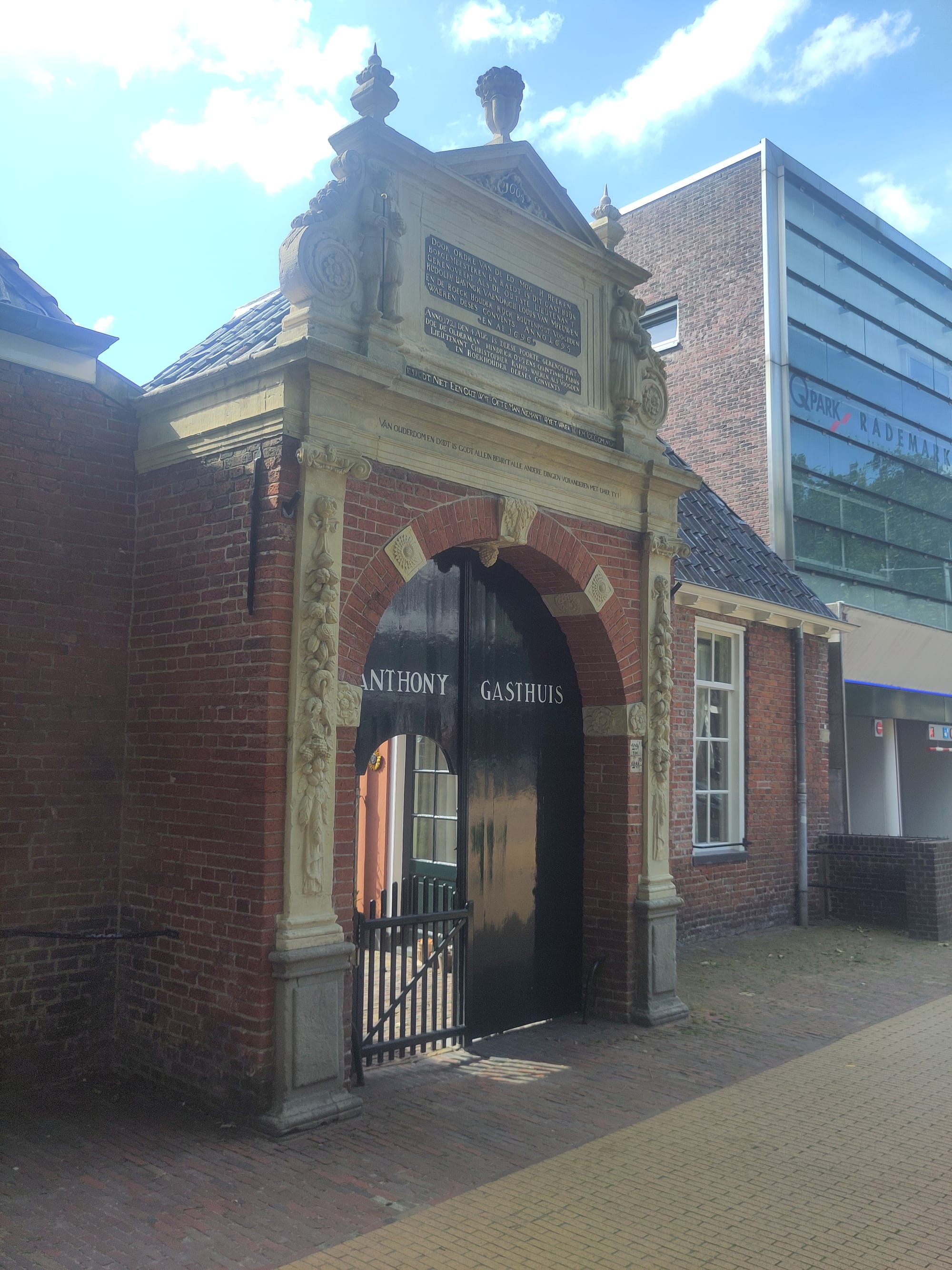 Daarna wilde ik nog een kop koffie halen, maar de laatste ronde was al geweest. Toen maar besloten terug te gaan naar de kippen waar ik op pas deze week. Op weg naar de fiets bij de kerk zag ik dat het Antony-gasthuis (genoemd naar de heilige Antonius van Padua) uit begin 16de eeuw een open poort had. Aangezien ik hier nog nooit geweest was, kon ik mooi nog eens binnen kijken. Naast bejaarden werden hier vanaf de 18de lange tijd ook geesteszieken gehuisvest. Mooi aan de rand van de stad, zodat mensen er geen last van hadden. Voor de bewoners was handig dat op zondagmiddag men geld betaalde om naar de geesteszieken te kijken. Bracht het ook nog wat inkomsten op!