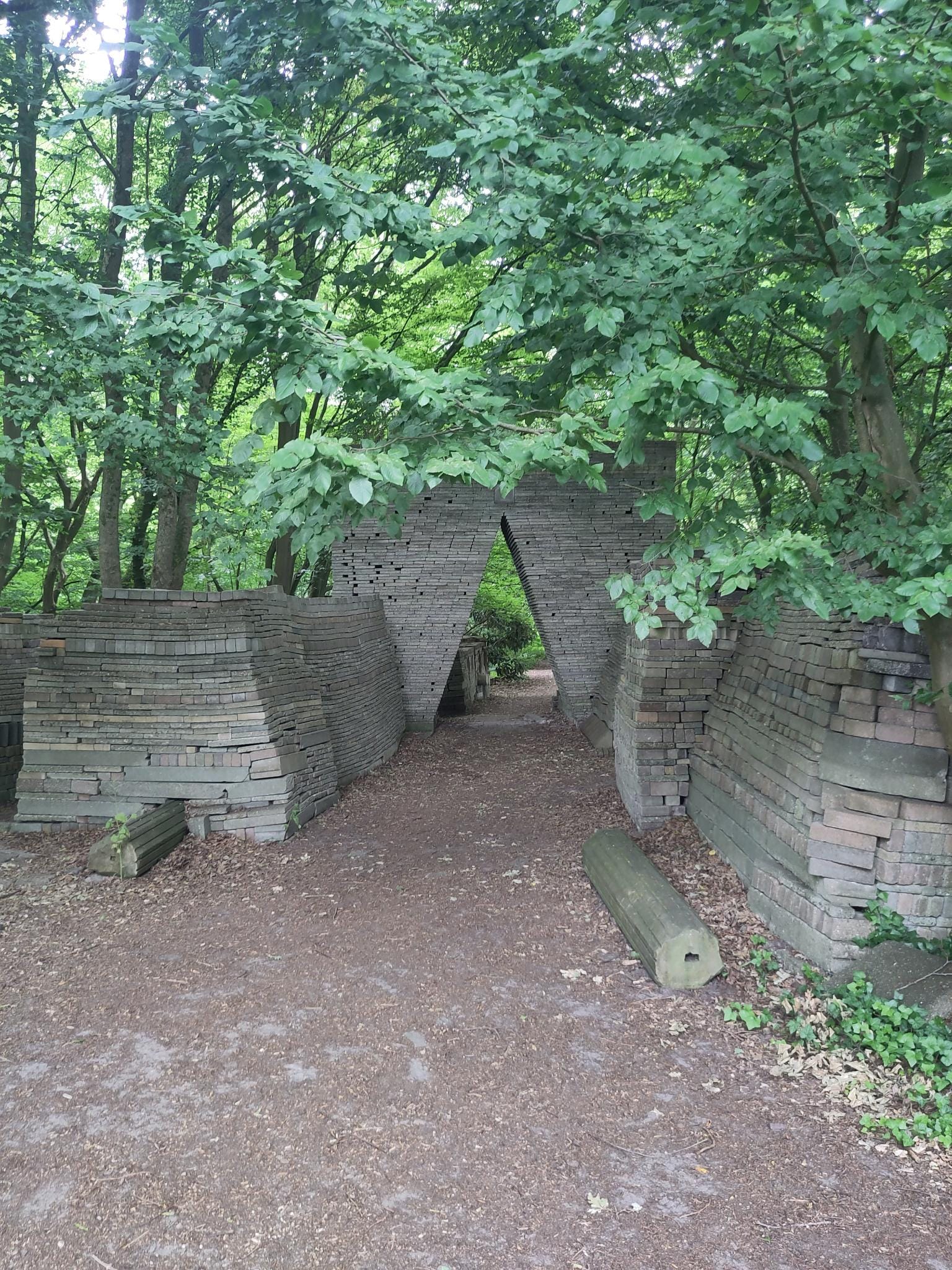 Daarna zijn we naar de Ecokathedraal van Le Roy geweest. Hierin zijn veel stenen opgebouwd als een soort ruïne waar vervolgens de natuur veel eigen ruimte krijgt. Een hele tijd terug (ergens in mijn tienerjaren) zijn we hier ook geweest. Erg leuk om te zien hoe dit zich nu met de natuur verder ontwikkelt en er nu meer begroeiing lijkt te zijn dan destijds. De plek geeft inderdaad het idee van een overgroeide ruïne waardoor het een hele prettige plek is om te zijn.