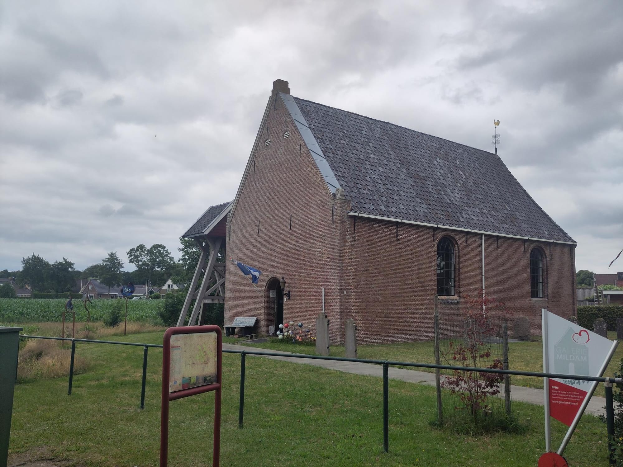 Vervolgens zijn we doorgereden naar Mildam. Hier zijn we eerst bij het oude kerkje geweest. Hierin zit nu een galerij voor meerdere kunstenaars en daar kun je wat koffie drinken. Sowieso erg leuk om zo'n heel klein oud kerkje te bekijken en hoe dat zo ook nog op een mooie manier open is.